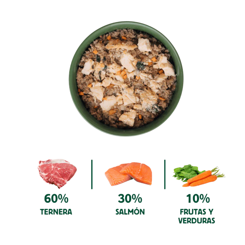 Menú completo de Salmón y Ternera para perros.